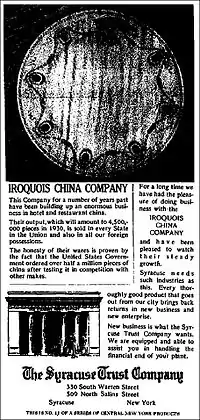![]() Iroquois China Company business customer of the Syracuse Trust Company - Syracuse Post-Standard, 1919 |
