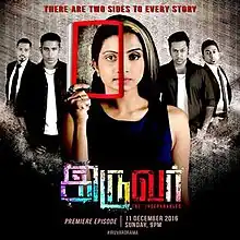 Iruvar is a 2016 Singaporean-Tamil-language mystery soap opera starring Indra, Gayathri Segaran, Vishnu, Varman, Jabu and Balakumaran. The first one-hour episode was aired on December 11, 2016.[1][2] It replaced Azhagiya Thamizh Magal and it broadcast on MediaCorp Vasantham from December 11, 2016, to 29 March 2017 for 62 episodes. The show's final one-hour episode aired Wednesday 29 March 2017.