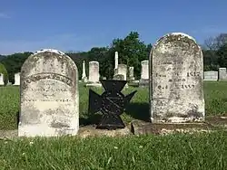 Parsons' body was transferred to Wappocomo for burial in the Parsons family burial ground.[30] Union Army forces assumed Parsons had died in the skirmish along Grassy Lick Run, and claimed the right to examine his body to search for wounds which would serve as sufficient cause to destroy his property.[30] Professor Nelson, a Presbyterian minister and instructor at the Potomac Academy, was a friend of the Parsons family, and denied Union Army officials access to Parsons' body.[30] As a compromise, Professor Nelson allowed Union Army officers to be present in the room while Parsons' corpse was examined.[30] No wounds were found on Parsons' body, and his remains were interred in the Parsons family burial ground at Indian Mound Cemetery.[30][31] On April 26, 1862, acting Quartermaster Lt. F. H. Morse completed the death certificate for Parsons although the circumstances of Parsons' death were not recorded.[32] Captain William Firey of Company B, 1st Maryland Cavalry and Captain C. W. Shearer of Company B, 3rd Maryland Infantry, Potomac Home Brigade were present for the examination of Parsons' body and attested there was "no evidence of gun-shot wounds or any other violence on him".[32] Witnesses present at the examination were William Vance and George William Washington.[32]