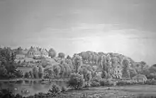 Blixen lived most of her life at the family estate Rungstedlund, which was acquired by her father in 1879. The property is located in Rungsted, 24 kilometres (15 mi) north of Copenhagen, Denmark's capital.[92] The oldest parts of the estate date to 1680, and it had been operated as both an inn and a farm. Most of Blixen's writing was done in Ewald's Room, named after author Johannes Ewald.[93]