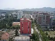 Ish-Blloku (English: Ex-Block), commonly Blloku (English: Block), is an upmarket area in Tirana, Albania. It widely known as an entertainment destination with its boutiques, shops, restaurants, trendy bars, pubs, and cafes.[1][2] The area is part of the neighbourhood of Tirana e Re in southwestern Tirana. During the peak summer months, its trendy bars transfer along the Albanian Riviera.