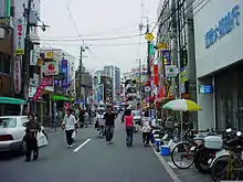 The station is near to one of the three campuses of Osaka University, though the campus is physically located in neighbouring Toyonaka City. The station is surrounded by bars, karaoke boxes, and izakaya restaurants along with more traditional small-stall shopping streets.