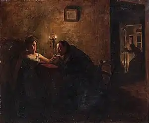 While in Rome, he was able to attract a permanent patron, Count Alessandro Lotteringhi della Stufa, who offered him room to set up a studio at the family palace in Florence. There, he gained numerous clients among the aristocracy, but much of his work from that time is unknown, as it remains in private collections.[1] He left there in 1891, to travel, although he went back occasionally, and returned in 1893. During this period, he painted little, focusing on caricatures, and lived a very disorganized life. He also contracted an unhappy marriage, with Irene Fabbricotti, a young woman from Tuscany, who gave him two daughters.