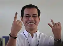 Noli de Castro, a former senator and vice president himself, was originally running for senator under Aksyon Demokratiko.[151] However, he withdrew from the race just five days after filing his certificate of candidacy citing undisclosed personal reasons.[152] He was replaced by Jopet Sison.[153]