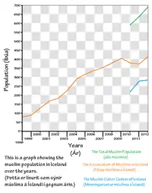 The first generation of Muslims born in Iceland probably began with people like Salmann's own children, such as Yousef Ingi Tamimi (b. 1988).[14] Iceland's Muslim population is of diverse origins, including people born in the Arab world, Albania, Africa, and Iceland.[15]