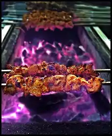 The Mughal and Indo-Iranian heritage influenced their cuisine, having tastes vary from mild to spicy and is often associated with aroma. It tends to use stronger spices and flavors. Most of a dastarkhawan dining table includes chapatti, rice, dal, vegetable and meat (beef, lamb, chicken, fish) dishes. Special dishes include biryani, qorma, kofta, seekh kabab, Nihari and Haleem, Nargisi Koftay, Shashlik, Kata-Kat, Roghani Naan, Naan, Sheer khurma (sweet), qourma, chai (sweet, milky tea), paan, and other delicacies associated with North Indian Muslim culture.