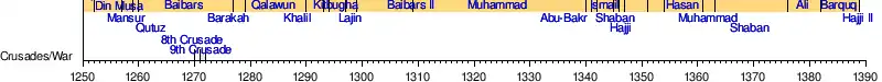 In 639 CE, ʿUmar appointed Muawiyah ibn Abi Sufyan as the governor of Syria after the previous governor died in a plague along with 25,000 other people.[68][69] To stop the Byzantine harassment from the sea during the Arab–Byzantine wars, in 649 Muawiyah set up a navy, with ships crewed by Monophysite Christians, Egyptian Coptic Christians, and Jacobite Syrian Christians sailors and Muslim troops, which defeated the Byzantine navy at the Battle of the Masts in 655 CE, opening up the Mediterranean Sea to Muslim ships.[70][71][72][73]
