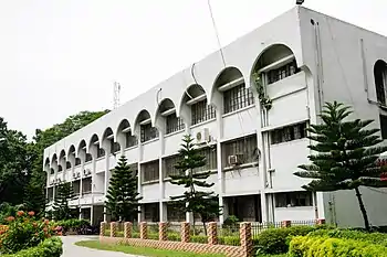 Islamic University, Bangladesh[2] (legally: Islamic University; Bengali: ইসলামী বিশ্ববিদ্যালয়, বাংলাদেশ; Arabic: الجامعة الإسلامية بنغلاديش) commonly referred to as Islamic University, Kushtia shortly IU, is a public PhD granting research university in Kushtia, Bangladesh and the largest seat of higher education in the south-west part of the country.[3][4] It is the only university in Bangladesh where a specialized stream of Theology and seven others academic divisions/faculties: Engineering and Technology, Humanities, Social Sciences, Sciences, Biological Sciences, Business Administration and Law are running parallel in a multicultural atmosphere. It is financed by the Government of Bangladesh through University Grants Commission, Bangladesh. On 22 November 1979, the foundation of the Islamic University was set up in Kushtia,[5] and it is operated under the Islamic University Act of 1980.[6][7] Islamic University began operations on 28 June 1986. It is the seventh oldest university in the country and the first university in Bangladesh established after the independence from Pakistan (then West Pakistan) in 1971.[8] It offers undergraduate, graduate, M Phil and PhD degrees.