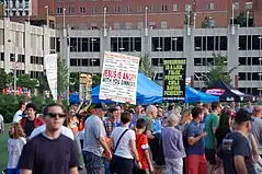 A second high profile example was Park 51, originally known as Cordoba House and branded by opponents as the Ground Zero Mosque. Park 51 was a proposed Islamic prayer space in lower Manhattan, two blocks from the site of the World Trade Center.[14] It became a national controversy during the 2010 mid-term election, with some public figures defending the project as religious freedom and other insisting its proximity to the site of the 9/11 World Trade Center attack was a provocation. At the time, the New York Times reported, "Polling shows that a majority of Americans oppose building it near ground zero."[15]