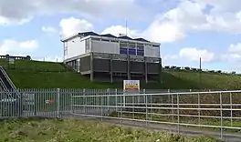 The embankment walls have a puddle clay core extending down through a gravel layer to the underlying blue London clay. The outside face of the embankment is grassed, the inner face is lined with concrete slabs.[6]