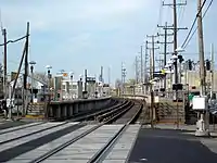 This station has two slightly offset high-level side platforms, each 10 cars long. Parking is largely restricted to Island Park residents, with permits issued by the village.[2]