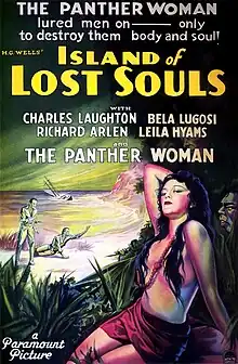 Island of Lost Souls is a 1932 American science fiction horror film directed by Erle C. Kenton. Produced and distributed by Paramount Productions, it is based on H. G. Wells' 1896 novel The Island of Doctor Moreau, and stars Charles Laughton, Richard Arlen, and Kathleen Burke. Island of Lost Souls is about Edward Parker (Arlen), a sailor who finds himself stranded on an island that is occupied by the scientist Dr. Moreau (Laughton). Parker agrees to stay until the next boat arrives; Moreau introduces him to Lota (Burke), who unknown to Parker, is part-panther. It is revealed all of the island's inhabitants are the results of Moreau's experiments to create humans from animals. Moreau tries to persuade Lota to have sex with Parker so he can continue his experiments.