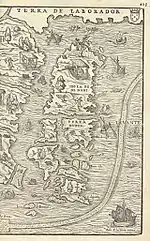 The Isle of Demons continues to appear as late as the 1556 map of "La Nueva Francia" by Giacomo Gastaldi – that is, after Jacques Cartier's expeditions (1534, 1535, 1541) had explored much of Newfoundland and the Gulf of St. Lawrence. The "Isola de Demoni" is depicted by Gastaldi as a substantially large island roughly encompassing northern Newfoundland, with figurative depictions of flying demons.