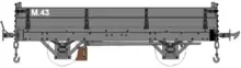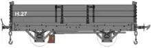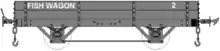 Five low-sided wagons were built on four-wheeled underframes released from coaches which had been put on bogie underframes ("pairs" coaches). They were numbered in a separate sequence with no letter prefix. They did not survive into the nationalisation era although some excellent photographs of them appear in the many books dedicated to the railway's history and rolling stock. They were labelled "Fish Wagon" at the left-hand side and carried their nominal fleet numbers to the right.