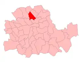 The Metropolitan Borough of Islington wards of Barnsbury, Lower Holloway, St Mary, St Peter, and Thornhill.[1]