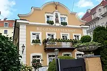 - No. 85 Gaststätte Bogenhauser Hof, Detached suburban house, Late Classicist, with richly curved south gable, around 1850