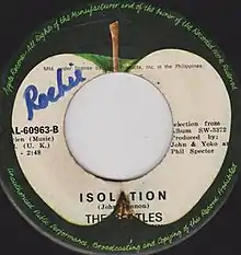 "Isolation" is a 1970 song appearing on John Lennon's first official solo album release, John Lennon/Plastic Ono Band. It ends side one of the album, and is the fifth track. In the Philippines Apple Records released "Isolation" as the b-side to "Mother", the single off John Lennon/Plastic Ono Band, in contrast to most countries where the b-side was Yoko Ono's "Why." It was also released on an EP in Mexico along with "Mother," "Look at Me" and "My Mummy's Dead."