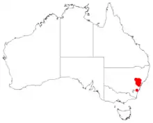 Nepean conebush occurs naturally on sandstone slopes and near cliff edges in heathland and dry sclerophyll forest in the valleys of the Goulburn and Nepean Rivers, on the Central Coast, the Central Tablelands and the Western Slopes down to Lithgow.[2][5]
