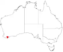 Isopogon latifolius is found from Albany and the Stirling Range eastwards to the vicinity of Cheyne Bay.[3] It grows on hilltops and stony outcrops and slopes, in association with sandstone, quartzite and schist.[1] It grows in heath, scrub, or low woodland.[3]