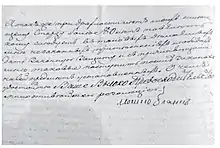 On 1 January 1845, at the age of 86, Moshe Blank also converted to Christianity. He was baptized Dmitry, probably matching the patronymics of his sons.[8] He wrote letters to the Emperor Nicholas I (there are known letters of 7 June 1845 and 18 September 1846 acknowledging that he had broken with the Jews for 40 years but could only convert after the death of his "very religious wife"). In his letters, he advocated to significantly tighten the limitation for the religious Jews: to forbid prayers for the coming of Moshiach, but instead require every Saturday to pray for the Tsar and his family; to forbid Hasidic Judaism and visits of Jewish houses by rabbis; to forbid non-Jews employed by the Jews to work on Saturdays and so on. According to Blank, the new requirements would greatly increase conversion of the Jews and would make Government payments of 30 roubles to each convert unnecessary.[8][9]