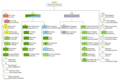 The Israeli Ground Forces (Hebrew: זרוע היבשה) are the ground forces of the Israel Defense Forces (IDF). The commander is the General Officer Commanding with the rank of Major General, the Mazi, subordinate to the Chief of General Staff.