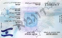 ![]() The reverse side of a contemporary biometric Israeli identity card | |