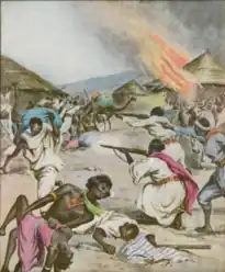 The Issa clan has produced numerous noble Somali men and women over the centuries, consisted of a King (Ugaas) and including many Sultans. Throughout their known history the Issa where known for their military strength and viciousness, the British and many old worlds empires who came across them viewed the Issa's as the strongest most warlike tribe of north east Africa.[11] The British also tried to invade Zeila home of the White Issa (Aysa) which the natives reigned victorious, with that there was never any attempt made to occupy the interior of the Issa country, which was mostly inhabited by the Black Issa ; and not withstanding the cruel nature of the tribe, whose only aspirations in life could very accurately be summed up in the two words "Murder and Loot".[12] With the typically villainous expression on their tribe members' faces as the British administration described.[13] Tribal traditions with those of the Black Issa was that a young blood was not allowed to marry until he had slain a man in battle; as it was not essential to kill the man in a fair combat, this usually led to a cold-blooded killing and constant battles with neighboring tribes and ethnic groups, among the other Somali tribes such customs were unheard of , this was all in effort to keep themselves a militarized tribe.[14] Given that they were always in a state of battle to the point it was viewed that killing was their pastime, as a way of honoring their deceased warriors, they would place upright stones, one for each victim, opposite the entrance of the deceased's dwelling. If the deceased had killed three or more men, stones would also be placed opposite each of the wives' three huts. If the deceased had killed one or more elephants, very large stones would be erected. Additionally, if any of the deceased's victims were mounted men, one upright stone surmounted by another flat stone would be put up. This practice of honoring their warriors through the placement of stones was a significant aspect of the Issa tribal traditions and culture.[15]