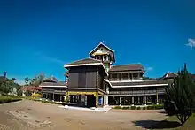 The Istana Lama Seri Menanti, is one of the famous landmarks in Kuala Pilah District, Negeri Sembilan, Malaysia is made in part of chengal (Penak) wood (Neobalanocarpus) and iron wood or belian wood (Eusideroxylon zwageri) and held together using only wooden pegs. The palace took six years to build and was completed in 1908 at a cost of $45,000.00 at that time. The design has subtle hints of Minangkabau architecture, has five levels rising to a height of sixty seven feet or approximately twenty meters high and has ninety nine columns to support the main structure. Four of the main columns of sixty seven feet are the Chengal timber that came from Bukit Pergai, Jelebu and is the central feature of the structure which holds up the apex of the palace, namely the Treasury Room. The Istana Lama was a replacement for Istana Pulih which was burned down by British soldiers. The drawings and plans for Istana Lama was detailed by Mr. Woodford (Public Works Department) based on the designs provided by two local craftsmen, Kahar and Taib. This palace was used until 1932 after which the Yang Di-Pertuan Besar moved to Istana Besar.