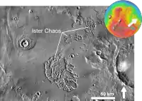 Ister Chaos is a broken up area in the Lunae Palus quadrangle of Mars. It is located at 13.0° N and 56.4° W. It is 103.4 km across and was named after a classical albedo feature at 10N, 56W.[1]