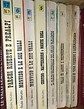 Alongside its maps I.G.C. also published the Guide IGC, a serie of guide books signed by the alpinist Giulio Berutto, who was one of the autors of CAI reference books making up the Guida dei Monti d'Italia. Each of Berutto's guide book, consisting in one or two volumes, covers the area of one of the 1:50,000 IGC map with a wide range of hiking, climbing and mountain bike itineraries.[8] Despite its author's death in November 2004,[9] which stopped further issues of the serie, many of the Guide IGC are still considered a reference by hikers and alpine huts managers.[10]