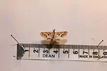 The wingspan is 21–29 mm. Adults have been recorded on wing from April to May.