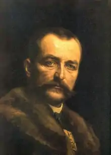 Count István Imre Lajos Pál Tisza de Borosjenő et Szeged (archaically anglicized Stephen Emery Louis Paul Tisza, in short Stephen Tisza; 22 April 1861 – 31 October 1918) was a Hungarian politician, prime minister, political scientist, international lawyer, macroeconomist, member of the Hungarian Academy of Sciences and champion duelist. The outbreak of World War One defined his second term as prime minister. He was assassinated by leftist revolutionaries on 31 October 1918 during the Aster Revolution, the day Hungary declared its independence, dissolving the Dual Monarchy or Austro-Hungarian Empire.[1] Tisza was the most zealous adherent of the Dual Monarchy among the Hungarian political leaders[2] and pleaded for consensus between liberals and conservatives.[3]