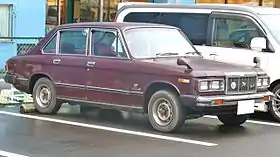 November 1973 marked another facelift, including a reworked rear end for the sedans. As the vans only saw limited sales they were only changed at the front. The only 1600-engined sedan still available by this time was a taxi version with an LPG-powered version of the overhead valve G161 engine, with 78 PS (57 kW) SAE and a three-speed column-shifted manual.[9] By the 1976 Tokyo Motor Show the 1600 sedan no longer appeared in pricelists (leaving only the 1800 Super Deluxe, with a newly desmogged engine with 105 PS,[10]) but the van was still only available with the original overhead valve G161 engine with 84 PS (62 kW) at 5200 rpm.[11] By the time of the 1976 Tokyo Show this was switched to the overhead-cam G161Z engine with 94 PS (69 kW).[12]