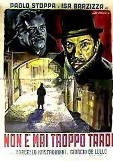It's Never Too Late (Italian: Non è mai troppo tardi) is a 1953 Italian comedy film directed by Filippo Walter Ratti.[1] The film is based on the 1843 novella A Christmas Carol by Charles Dickens.