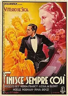 It Always Ends That Way (Italian: Finisce sempre così) is a 1939 Italian musical comedy film directed by Enrique Susini and starring Vittorio De Sica, Nedda Francy and Roberto Rey. The film was based on a novel by Robert Dieudonné.[1] It was shot at the Cinecittà studios in Rome with sets designed by Salvo D'Angelo.