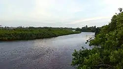 The 3,481 hectares (8,600 acres) Itaúnas State Park, created in 1991, is named after the Itaúnas River, which runs through the park for 34 kilometres (21 mi).[1] The river approaches the coast at the settlement of Itaúnas and then runs southwest, parallel to the coast behind a sand bar, before entering the Atlantic Ocean to the north of Conceição da Barra.[2]