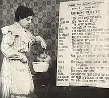 An American teacher who had studied in Italy, Sarah Wool Moore was so concerned with grifters luring immigrants into rooming houses or employment contracts in which the bosses got kickbacks that she pressed for the founding of the Society for the Protection of Italian Immigrants (often called the Society for Italian Immigrants). The Society published lists of approved living quarters and employers. Later, the organization began establishing schools in work camps to help adult immigrants learn English.[67][68] Wool and the Society began organizing schools in the labor camps which employed Italian workers on various dam and quarry projects in Pennsylvania and New York. The schools focused on teaching phrases that workers needed in their everyday tasks.[69] Because of the Society's success in helping immigrants, they received a commendation from the Commissioner of Emigration for the Italian Ministry of Foreign Affairs in 1907.[70]