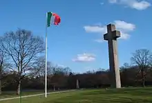 One of the Italian flags that participated in the Crimean War is kept in the Royal Armoury of Turin.[97] In 1857, an Italian flag with the pole surmounted by a Phrygian cap and with an archipendulum, a symbol of social balance, was a symbol of the Sapri expedition, or rather the failed attempt to trigger a revolt in the Kingdom of the Two Sicilies perpetrated by Carlo Pisacane.[98][99] In order not to be captured, Pisacane committed suicide, and was reported to be bandaged with the tricolour flag.[100][101]