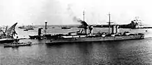 San Marco was disarmed and converted into a radio-controlled (by the elderly destroyer Audace) target ship in 1931–1935. Her old boilers were replaced by four oil-burning Thornycroft-type boilers which reduced her maximum speed to 18 knots (33 km/h; 21 mph) from 13,000 shaft horsepower (9,700 kW). During a naval review for Adolf Hitler in the Bay of Naples on 5 May 1938, the ship was used as a target by the heavy cruisers Fiume and Zara.[22] She was captured by the Germans when they occupied La Spezia on 9 September 1943; the ship was found at the end of the war sunk in the harbor there. San Marco was formally stricken from the Navy List on 27 February 1947 and broken up in 1949.[23]