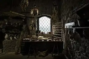 Food preservation was either chemical or physical, as refrigeration did not exist. Meats and fish were smoked, dried, or kept on ice. Brine and salt were used to pickle items such as herring, and to cure pork. Root vegetables were preserved in brine after they had been parboiled. Other means of preservation included oil, vinegar, or immersing meat in congealed, rendered fat. For preserving fruits, liquor, honey, and sugar were used.[37]