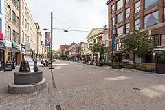 The Ithaca Commons is a two-block[1] pedestrian mall in the business improvement district known as Downtown Ithaca that serves as the city's cultural and economic center. The Commons is a popular regional destination, and is filled with upscale restaurants and shops, public art, and frequent community festivals.