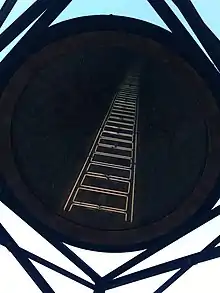 Navarro also works with light and infinity mirrors, in which viewers lose themselves in an apparently infinite space, as neon phrases or structures loom out, and suggest what lies beyond. These abyss-like works can link back to Navarro's fear of being abducted as a child.[5] As he navigates his past, the artist readily admits, "There is a certain amount of fear in my pieces".[5][6] In ‘Criminal Ladder’ (2005), Navarro created a 30-feet-high ladder made with fluorescent light tubes. On the tubes he has written the names of people who committed human rights abuses during the Pinochet time in power.[7][8]