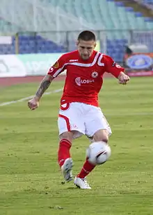 In January 2008 Bandalovski signed for Lokomotiv Sofia.[5] Performing as a solid back, it didn't last long until he gained head coach Dragan Okuka's trust and became a starter. Sometimes credited as having a bad temper, he maintained the status of one of the most trustworthy defenders in the league, and soon was called up to the Bulgarian national football team.[6]
