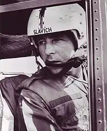 After earning his wings for fixed-wing and helicopter at the U.S. Army Aviation School at Fort Rucker, Alabama, Slavich was deployed to Okinawa with the 503rd Infantry Regiment. In 1960, while stationed in Okinawa, then Major Slavich discovered a detachment of 12 HU-1A "Huey" support helicopters. He formed a company, and worked to arm the helicopters as the French had armed theirs during the Algerian War in the late 1950s. The goal was to prove that the HU-1A (and later, UH-1B) helicopters could be sufficiently armed to provide effective close-in tactical support for troop-carrying ships.[3] Armed with four 7.62-millimeter machine guns and two rocket pods, each with eight rockets, all mounted outside the helicopter just above the skids, the firepower of the HU-1A exceeded that carried by World War II fighter planes.[4]:204