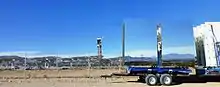 ![]() Looking north towards Ivanpah Facility's eastern boiler tower from Interstate 15 | |