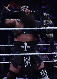 Throughout the beginning of the year, the team of Hanson & Rowe, now dubbed the War Raiders would continue their winning streak, by defeating several tag teams in the NXT division, including The Mighty and Heavy Machinery.[28] At NXT TakeOver: WarGames (2018) in Los Angeles, War Raiders would team up with Ricochet and Pete Dunne in the main event to defeat The Undisputed Era in the eponymous WarGames match.[29] At NXT TakeOver: Phoenix, War Raiders would defeat the team of Kyle O'Reilly and Roderick Strong to win the NXT Tag Team Championship. On April 15, 2019, they debuted on Raw as The Viking Experience under the new ring names of Erik (Rowe) and Ivar (Hanson). The following week, their name was changed to The Viking Raiders.[30] On September 7, 2020, on Raw, The Viking Raiders teamed up with Apollo Crews and Ricochet in an eight-man tag team match against The Hurt Business in a losing effort, where Cedric Alexander scored the pinfall over Ricochet.The match was forced to an abrupt ending due to Ivar suffering a legitimate cervical injury during the match.[31][32] On September 14, Ivar underwent successful surgery to repair a neck injury.[33][34] Ivar would return to in ring action on April 12 edition of Raw, teaming up with his tag team partner Erik going up against Shelton Benjamin and Cedric Alexander in a winning effort.[35]
