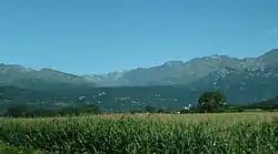 Its right-hand counterpart, less regular in shape, is represented by the elevations located between Bairo and the outlet of the Chiusella stream on the plain. Here, as well, the highest altitudes are reached in the weld zone with the alpine chain (about 800 m a.s.l. near Brosso); between Strambinello and Baldissero Canavese the continuity of the hill chain is then interrupted by the gorge by which the Chiusella veers eastward heading toward the confluence with the Dora Baltea.[5]