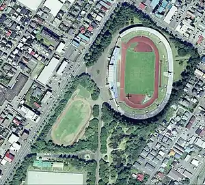 The stadium was completed in June 1966 to be a venue for track and field events of the 25th National Sports Festival of Japan held in 1970. It was subsequently used for a number of football and rugby matches until the early 1990s; however, it is no longer used for official J.League games as it does not meet the current specifications.