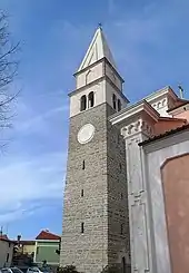An ancient Roman port and settlement known as Haliaetum stood to the southwest of the present town, next to the village of Jagodje, as early as the 2nd century BC. The town of Izola was established on a small island by refugees from Aquileia in the 7th century. The coastal areas of Istria came under Venetian influence in the 9th century. The settlement was first mentioned in writing as Insula in a Venetian document entitled Liber albus in 932 AD.[2] It became definitely the territory of the Republic of Venice in 1267, and the centuries of Venetian rule left a strong and enduring mark on the region. The Venetian part of the peninsula passed to the Holy Roman Empire of the German Nation in 1797 with the Treaty of Campo Formio, until the period of Napoleonic rule from 1805 to 1813 when Istria became part of the Illyrian provinces of the Napoleonic Empire. After this short period, during which Izola's walls were torn down and used to fill in the channel that separated the island from the mainland, the newly established Austrian Empire ruled Istria until November 1918.[3] The treaty of Saint Germain assigned Izola and the rest of the Istria region to Italy. The Italian-speaking population was the majority according to the Austro-Hungarian census of 1900: of 5,363 inhabitants, 5,326 spoke Italian, 20 Slovene, and 17 German. Istria became part of the Kingdom of Italy, until Italian capitulation in September 1943, whereupon control passed to Germany. Izola was liberated by a naval unit from Koper at the end of April 1945. After the end of World War II, Izola was part of Zone B of the provisionally independent Free Territory of Trieste; after the de facto dissolution of the Free Territory in 1954 it was incorporated into Slovenia, then a part of Yugoslavia.[4] The newly defined Italo-Yugoslav border saw the migration of many people from one side to the other. In Izola's case, many Italian speakers emigrated, and in their place Slovenian-speaking people from neighbouring villages settled in the town.[4]