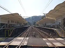 Izu-Ōkawa Station was opened on December 10, 1961. The station is located next to Ōkawa hot springs, and there is a foot bath on the grounds of the station.